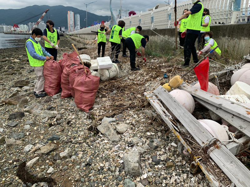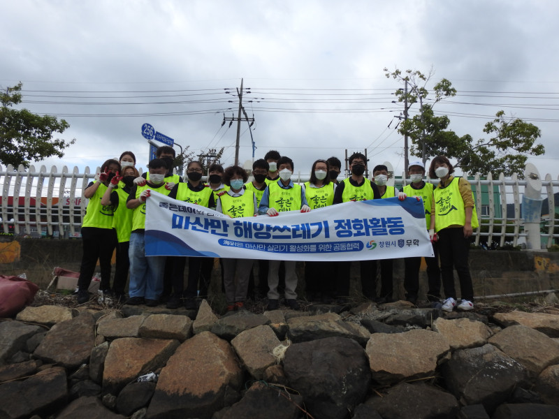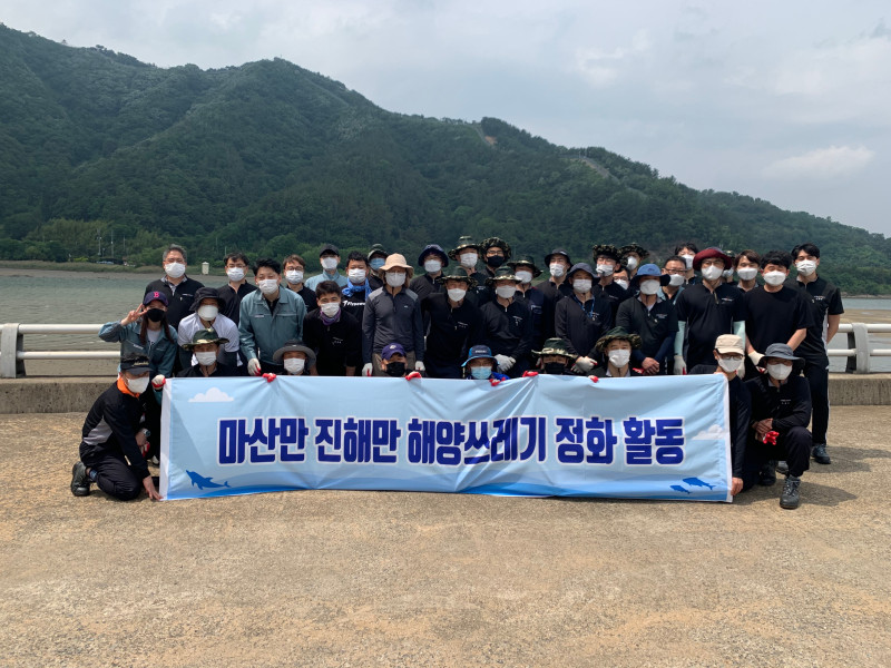 2021년 5월 28일 ~ 6월 16일까지 바다의 날을 맞아 마산만 해양쓰레기 정화활동을 실시하였습니다. 마산만 일대 4개 지점(봉암갯벌 일대, HSD엔진 앞 조간대, 무역로, 창원천・남천 두물머리)에서 HSD엔진, 창원시지속가능발전협의회, 경남환경기술인협회, 해성디에스, 무학 등 기업, 단체 118명이 참여해 100L 마대 220개 분량의 해양쓰레기를 수거하였습니다.