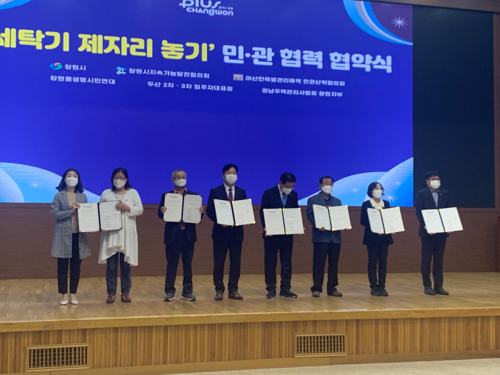 2021년 4월 22일 창원시청 시민홀에서 개최된 세탁기 제자리 놓기 범시민운동 선포식을 시작으로 TV 캠페인, 유튜브, 페이스북 등을 통한 홍보 및 스티커 제작 배포 등 인식개선 사업을 진행하고 있으며 두산3차 아파트를 대상으로 시범사업을 추진하고 있습니다.