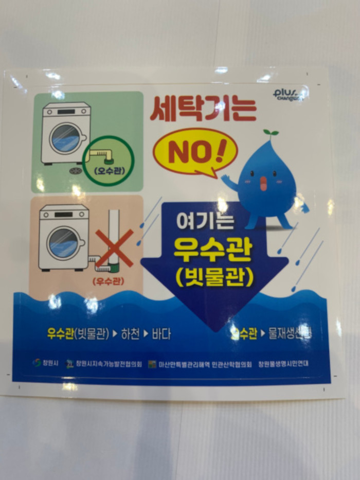 창원시에서는 발코니 우수관에 잘못 설치된 세탁 오수관을 제대로 연결하기 위한 캠페인을 진행하고 있습니다.