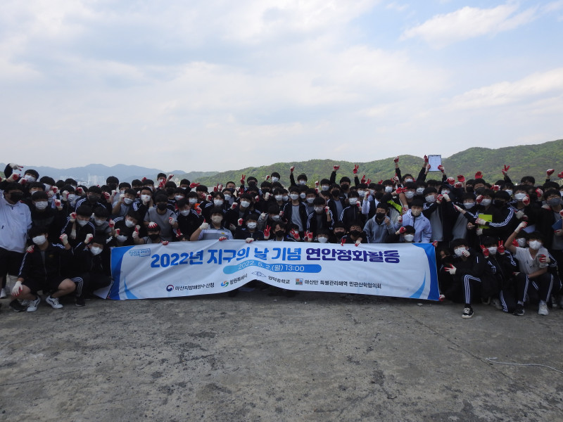 2022년 5월 2일(월) 오후1시 가포물양장에서 양덕중학교 3학년 다섯반 123명이 정화활동과 해양쓰레기 모니터링을 실시하였습니다. 2022년 지구의 날을 기념하고 마산만 살리기 실천활동으로 정화활동을 진행했습니다. 이날 수거한 쓰레기는 50L 마대 40개 분량, 약 200kg 이었습니다.