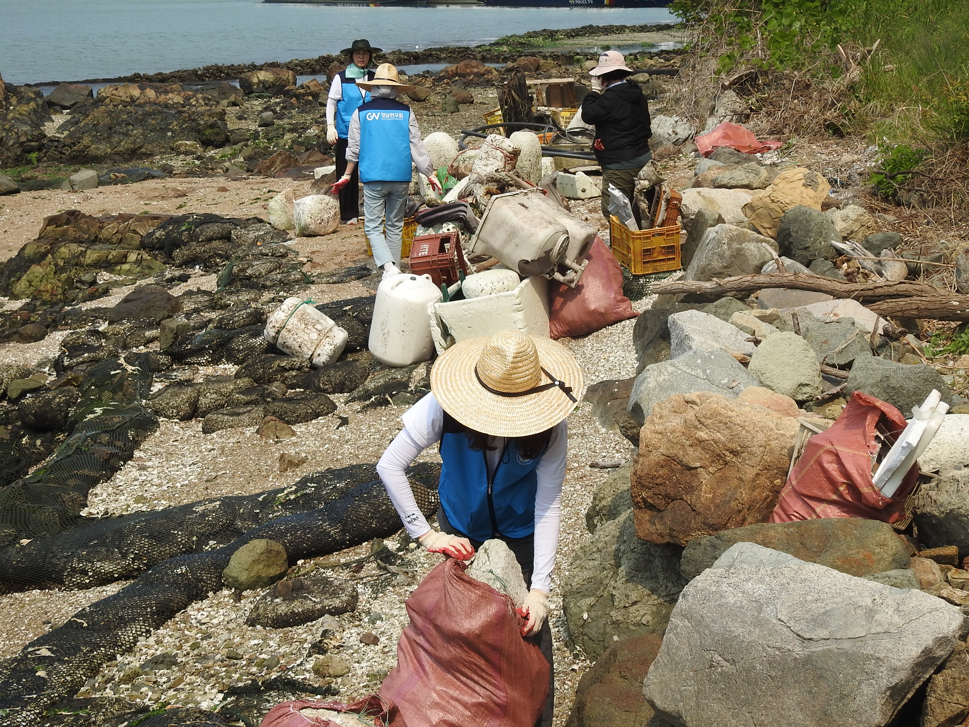 마산YWCA, 마산창원진해환경운동연합, 경남연구원 등 39명이 참여 / 마대 200개 분량(주요쓰레기 : 스티로폼 · 페트병 · 비닐)