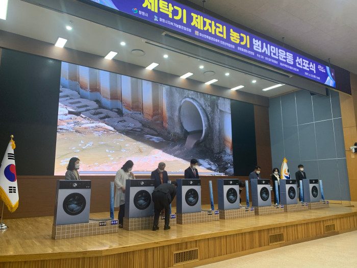 2021년 4월 22일 창원시청 시민홀에서 개최된 세탁기 제자리 놓기 범시민운동 선포식을 시작으로 TV 캠페인, 유튜브, 페이스북 등을 통한 홍보 및 스티커 제작 배포 등 인식개선 사업을 진행하고 있으며 두산3차 아파트를 대상으로 시범사업을 추진하고 있습니다.