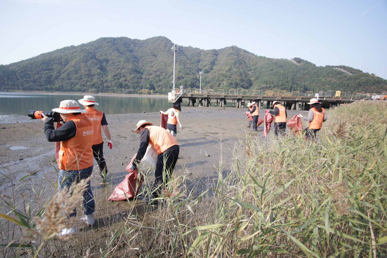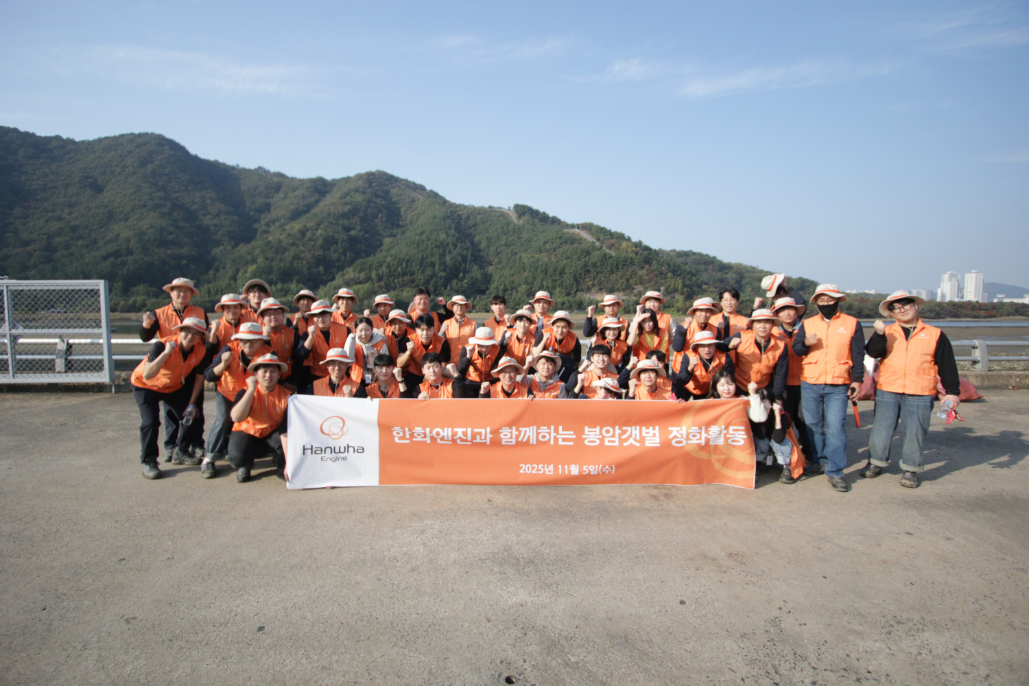 봉암갯벌 생태학습장과 마주보고 있는 한화엔진 주변 주간대는 창원천, 남천 등 도심 쓰레기와 마산만 내만 해양쓰레기가 모이는 장소 입니다. 모래조간대, 펄갯벌, 혼합갯벌이 다양하게 조성되어 있고 갈대가 잘 자리잡고 있는 곳이기도 합니다. 2025년 11월 5일(수) 오후2시 한화엔진 앞 조간대에서 한화엔진 임직원 45명, 실무자 2명 등 47명이 참여한 가운데 2025년 마지막 마산만 해양쓰레기 정화활동을 실시했습니다.