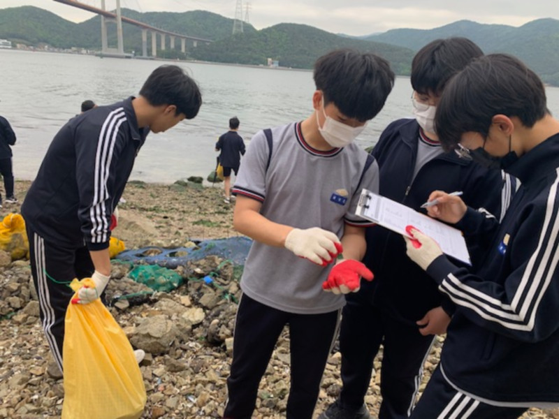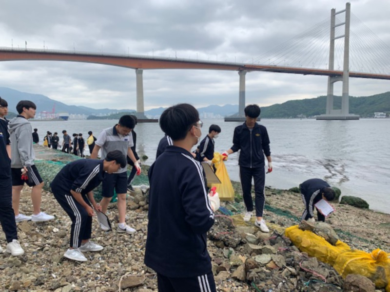 양덕중학교는 가포해안 일대 정화활동과 함께 해양쓰레기 모니터링을 진행했습니다.