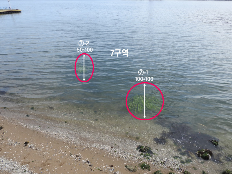 4월 9일 : 마산만 돝섬 잘피 조사 지점 및 지점면 잘피 현황