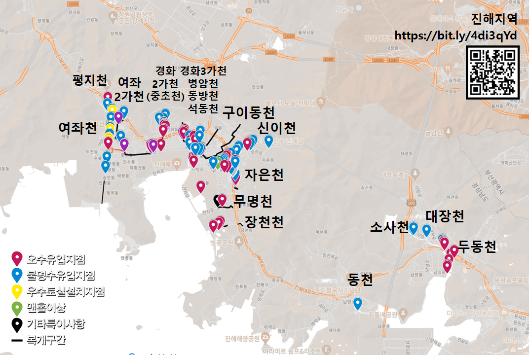 2024년 3월37일 ~ 7월30일 까지 마산 창원 진해에서 마산만 특별관리해역으로 들어오는 39개 하천 오염원을 조사했습니다.